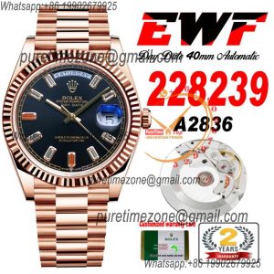 EWF DayDate 40 228235 A2836 Automatic Mens Watch RG Black Diamond Stick Dial President Bracelet Best Edition $552.00 $460.00