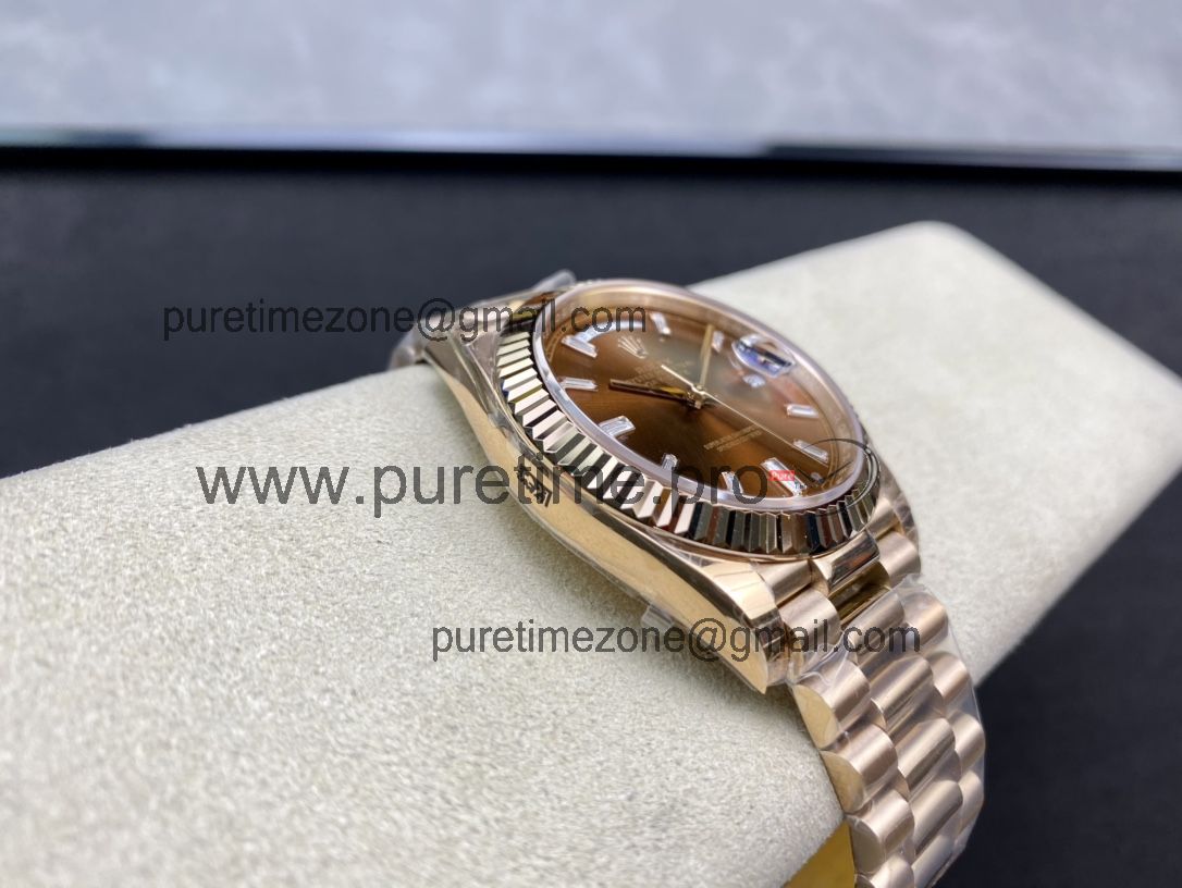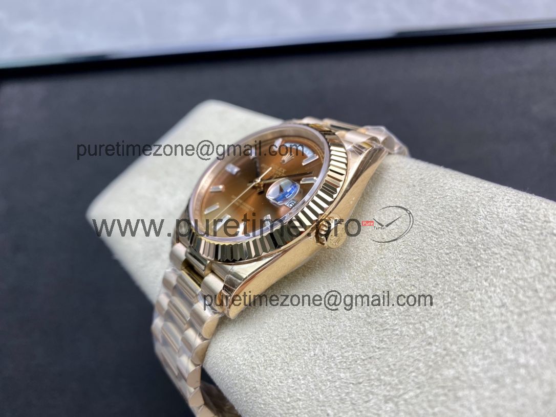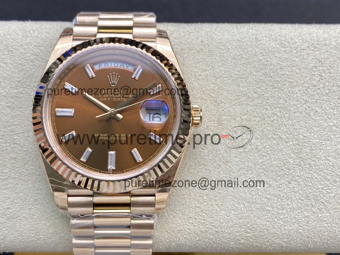EWF DayDate 40 228235 A2836 Automatic Mens Watch RG Brown Stick Dial President Bracelet Best Edition
