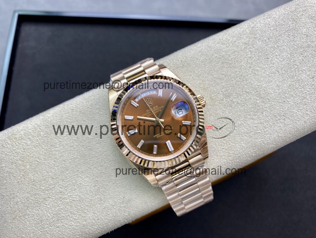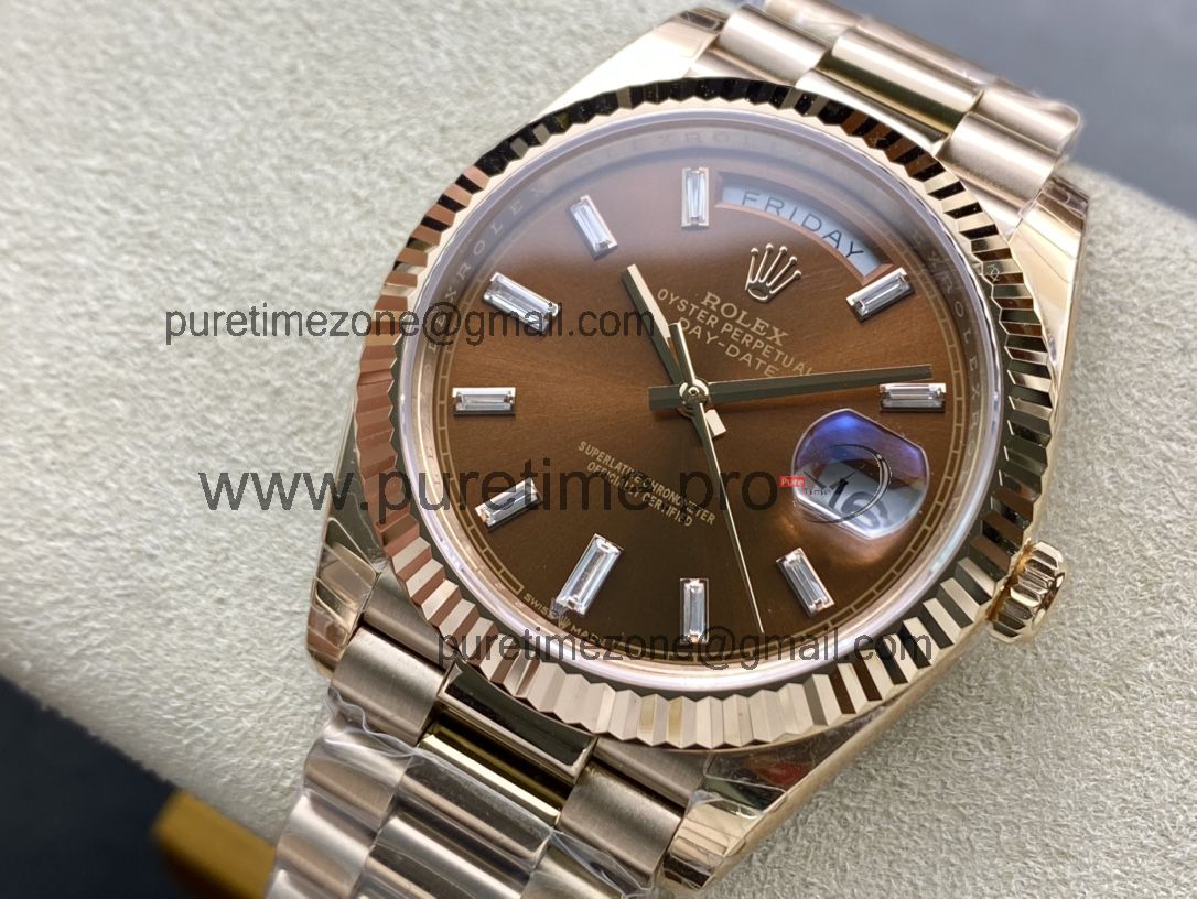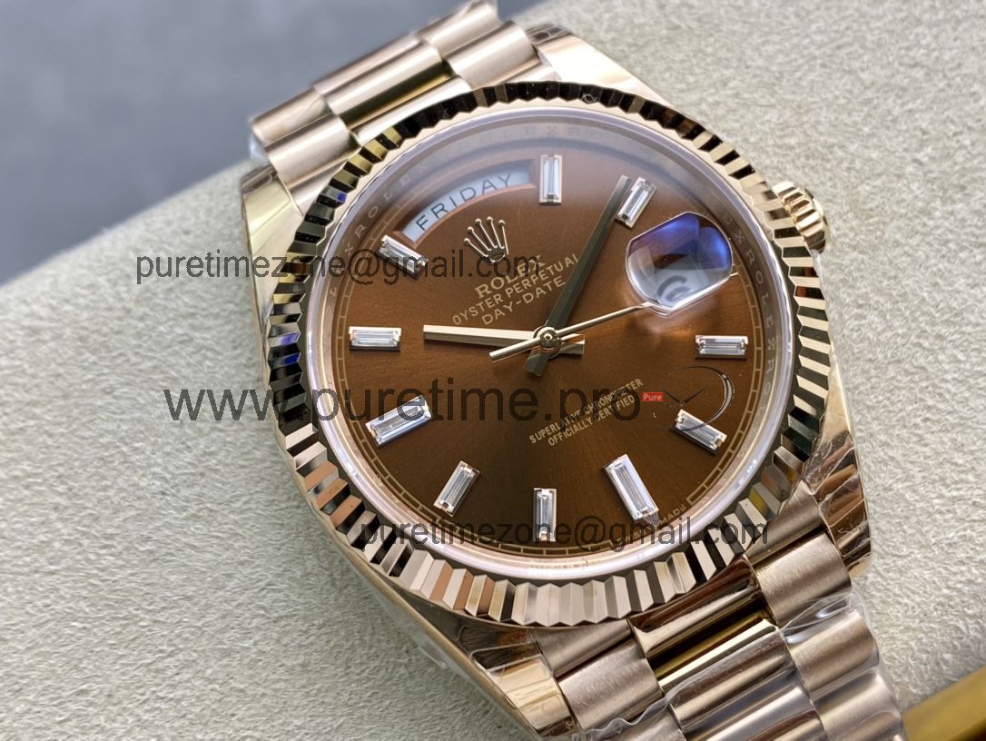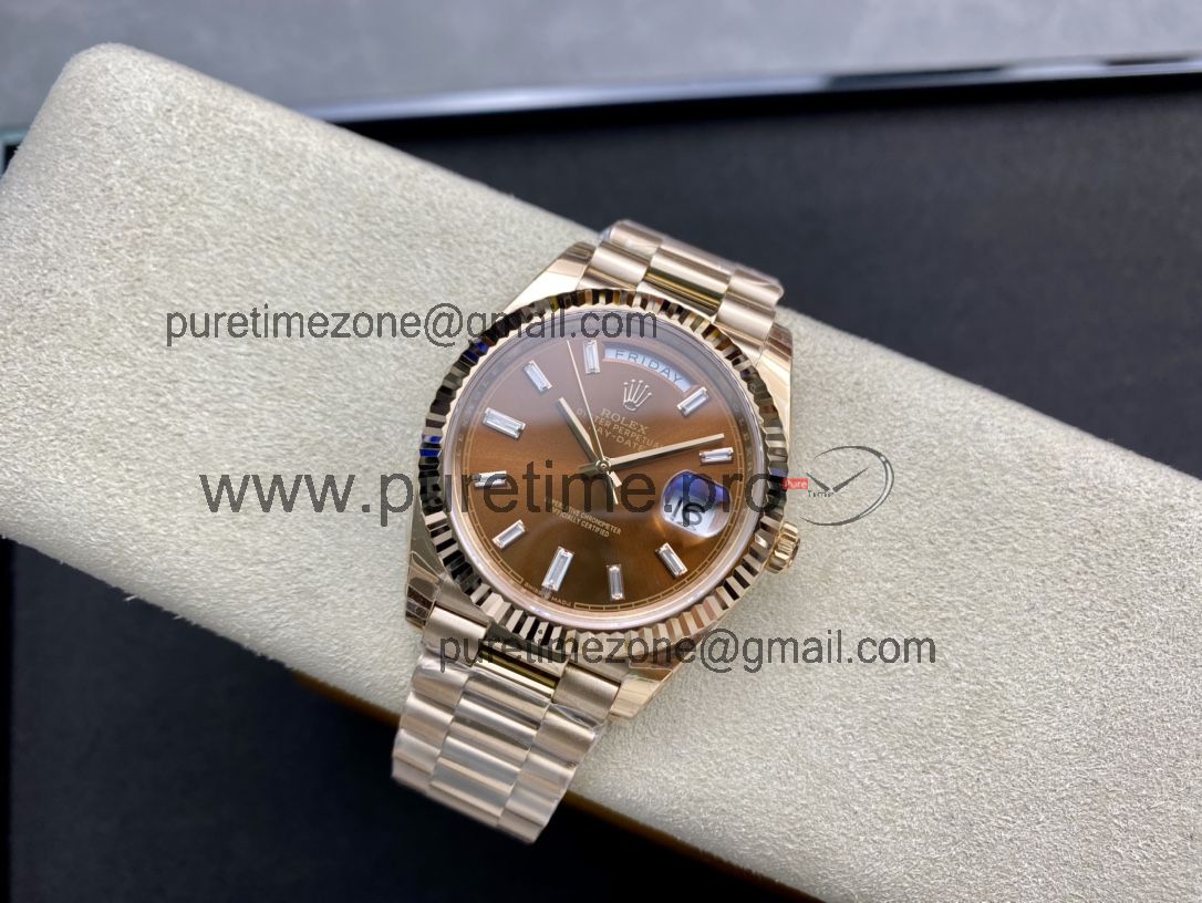 EWF DayDate 40 228235 A2836 Automatic Mens Watch RG Brown Stick Dial President Bracelet Best Edition