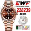 EWF DayDate 40 228235 A2836 Automatic Mens Watch RG Brown Stick Dial President Bracelet Best Edition