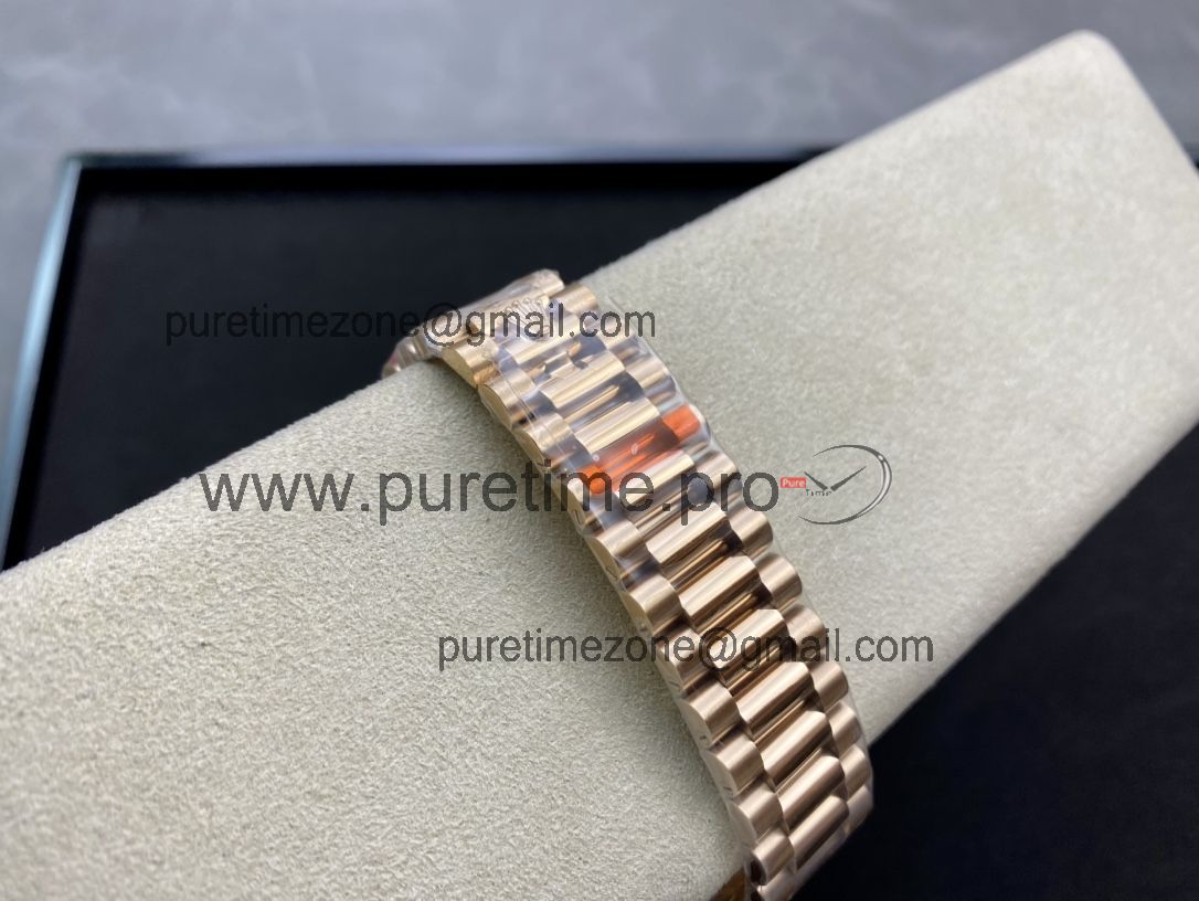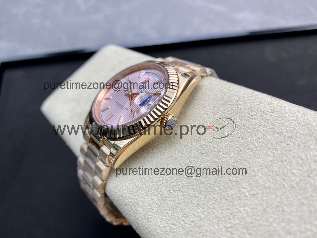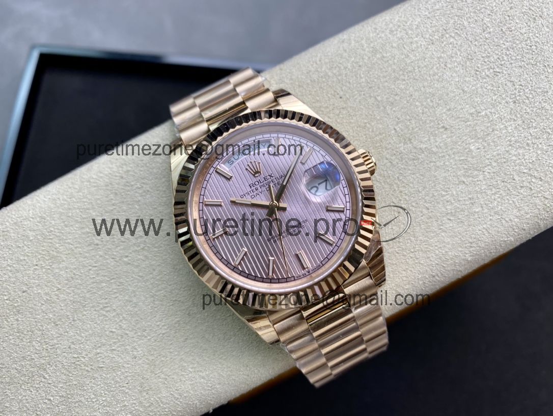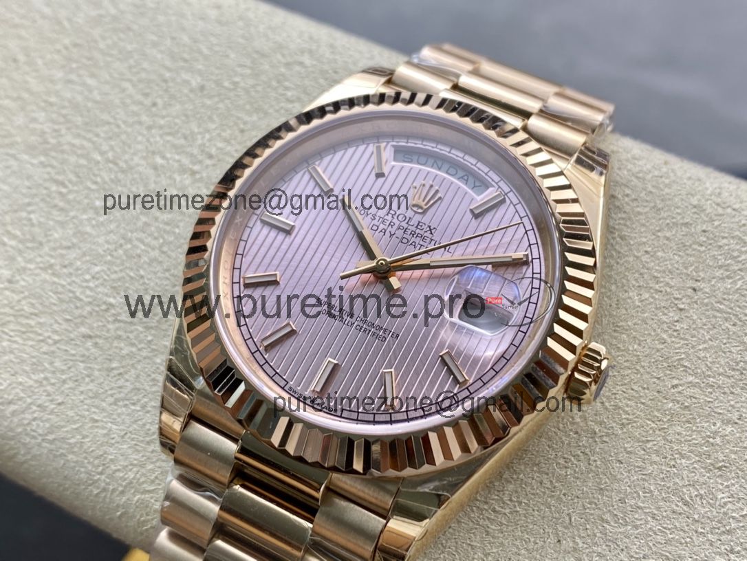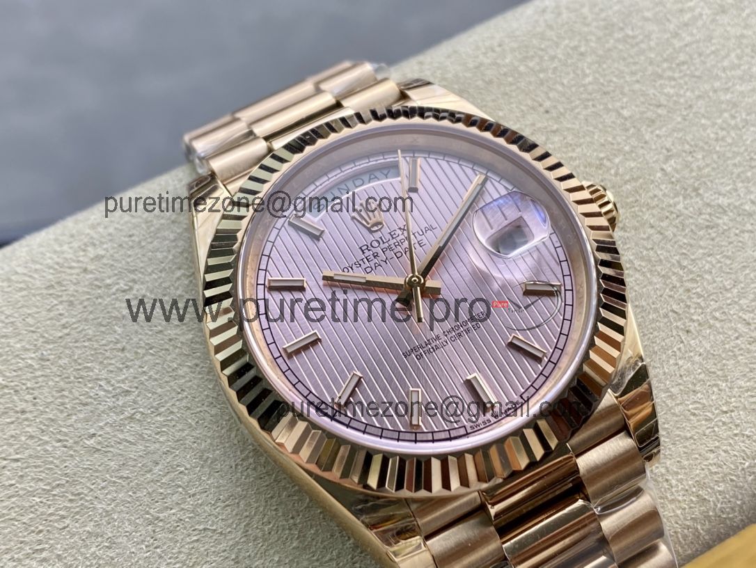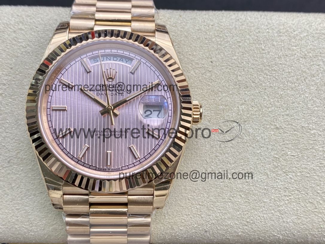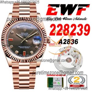 EWF DayDate 40 228235 A2836 Automatic Mens Watch RG Pink Stick Dial President Bracelet Best Edition