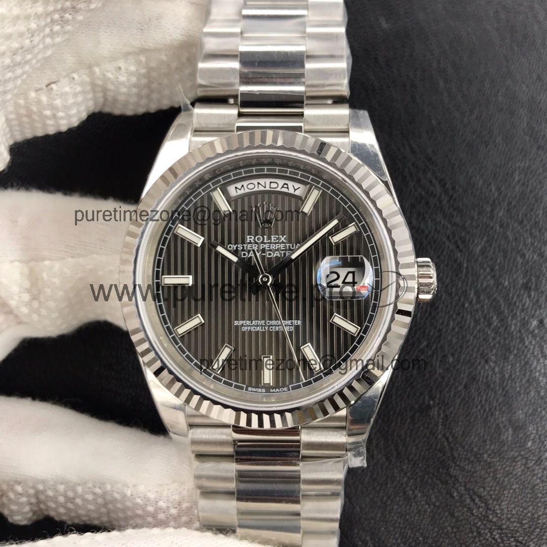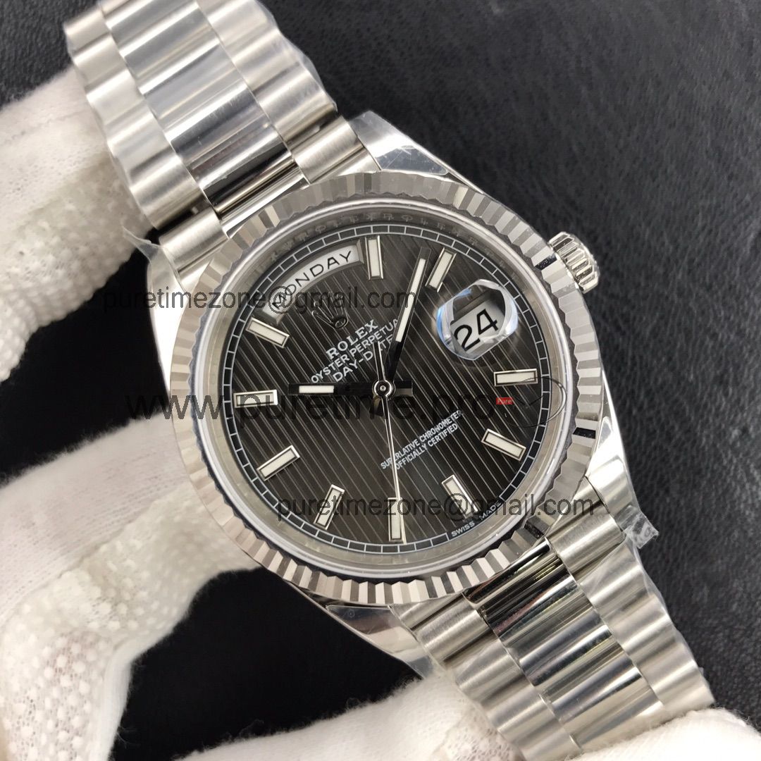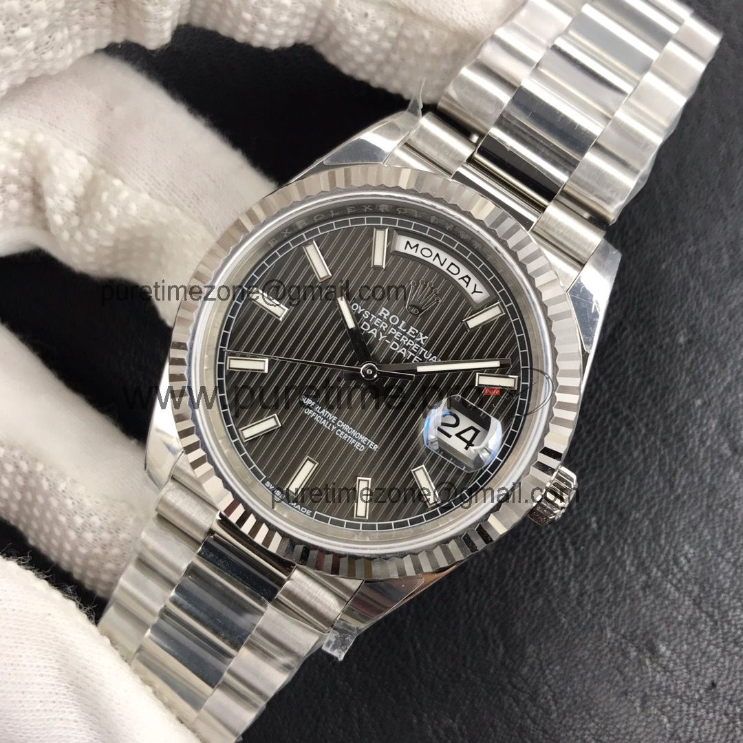 EWF DayDate 40 228239 A2836 Automatic Mens Watch Gray Stick Dial President Bracelet Best Edition