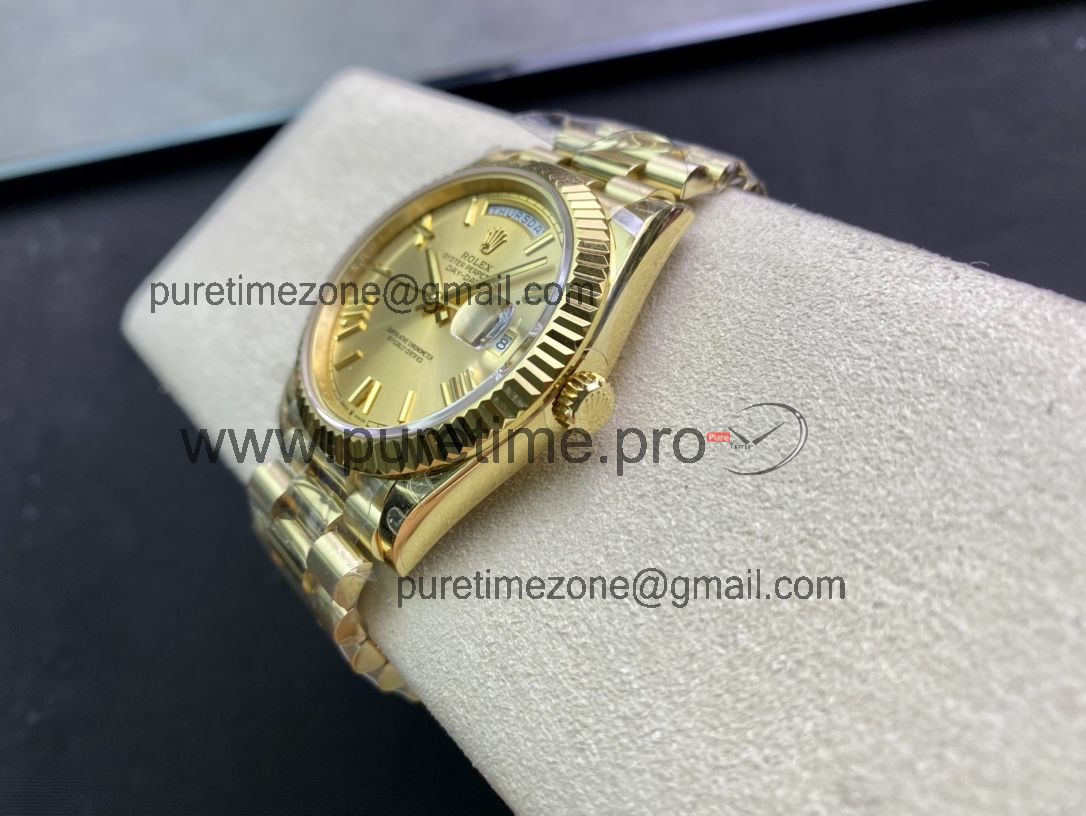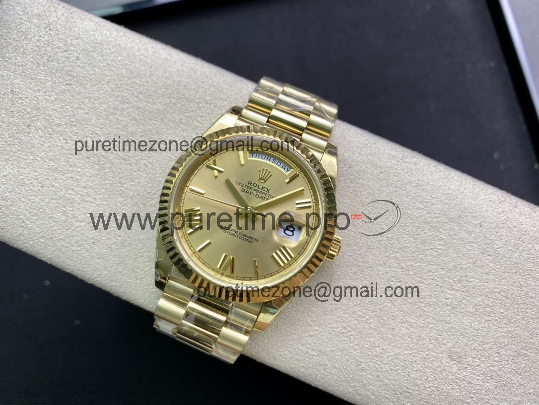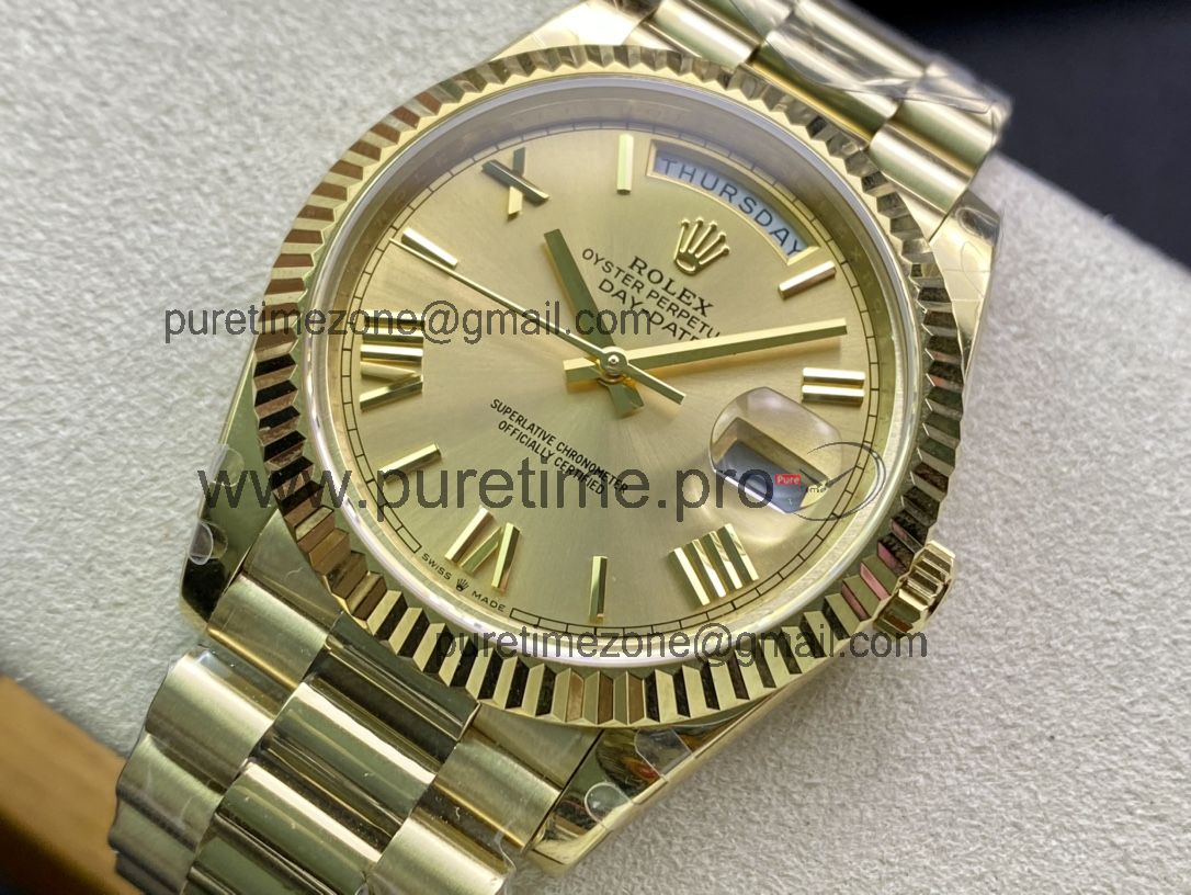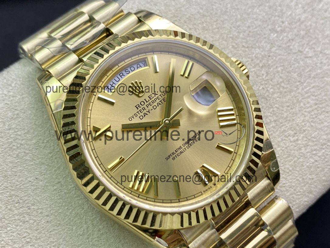 EWF DayDate 40 228239 A2836 Automatic Mens Watch YG Champagne Roman Dial President Bracelet Best Edition