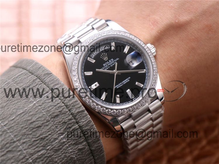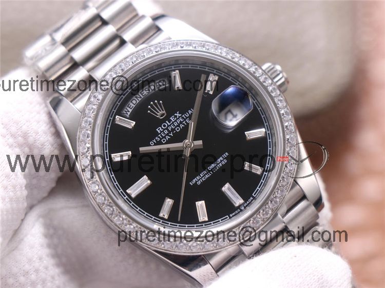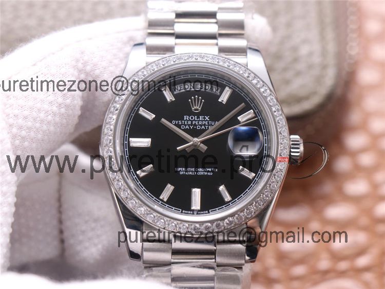 Home Rolex Day-Date EWF DayDate 40 228345 A2836 Automatic Mens Watch Diamond Bezel Black Dial President Bracelet Best Edition