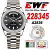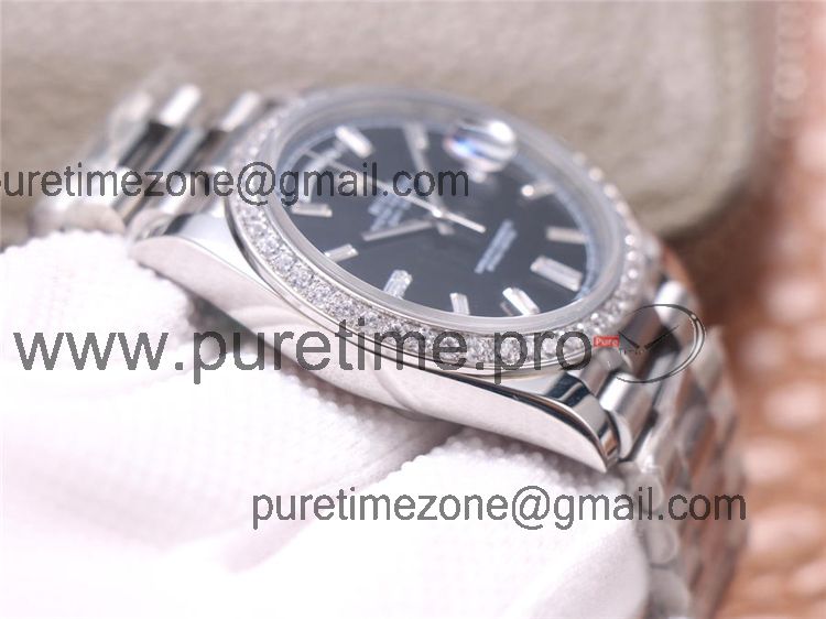 EWF DayDate 40 228345 A2836 Automatic Mens Watch Diamond Bezel Black Dial President Bracelet Best Edition