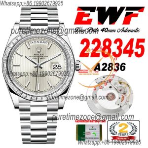 EWF DayDate 40 228345 A2836 Automatic Mens Watch Diamond Bezel Silver Dial President Bracelet Best Edition $552.00 $460.00