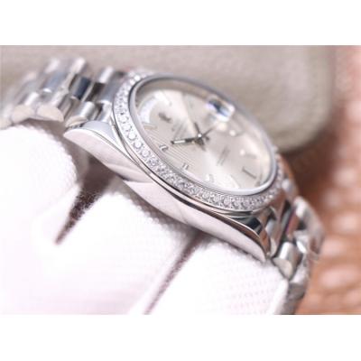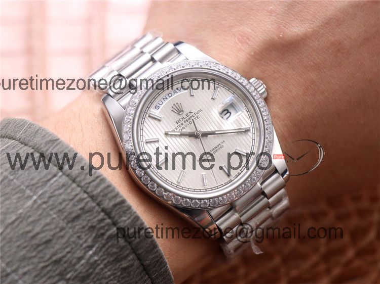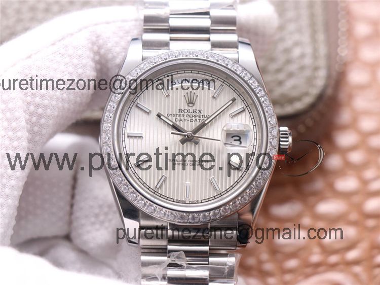 EWF DayDate 36 128349 A2836 Automatic Mens Watch Diamond Bezel Silver Dial SS President Bracelet Best Edition