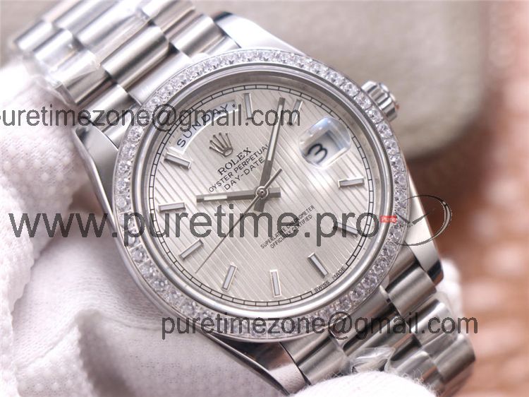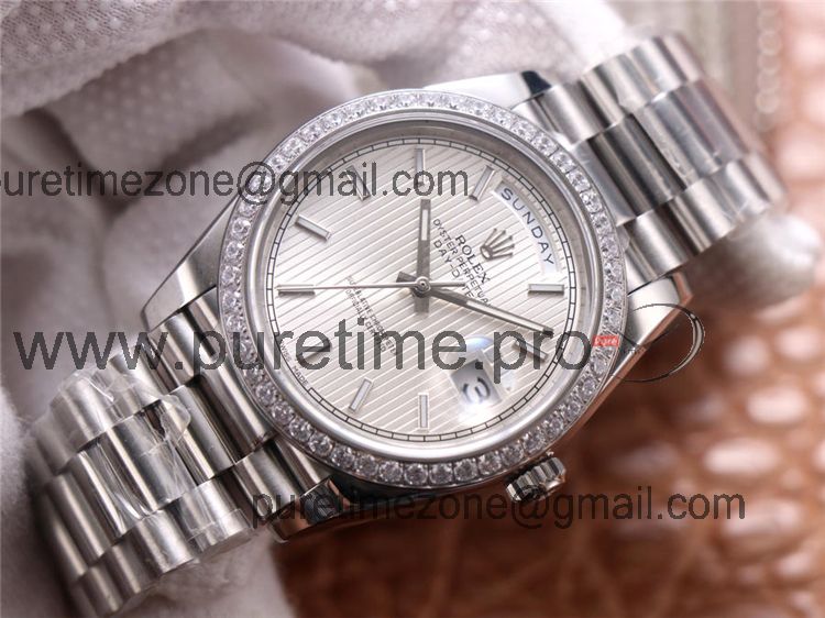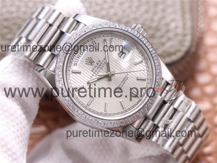 Home Rolex Day-Date EWF DayDate 40 228345 A2836 Automatic Mens Watch Diamond Bezel Silver Dial President Bracelet Best Edition