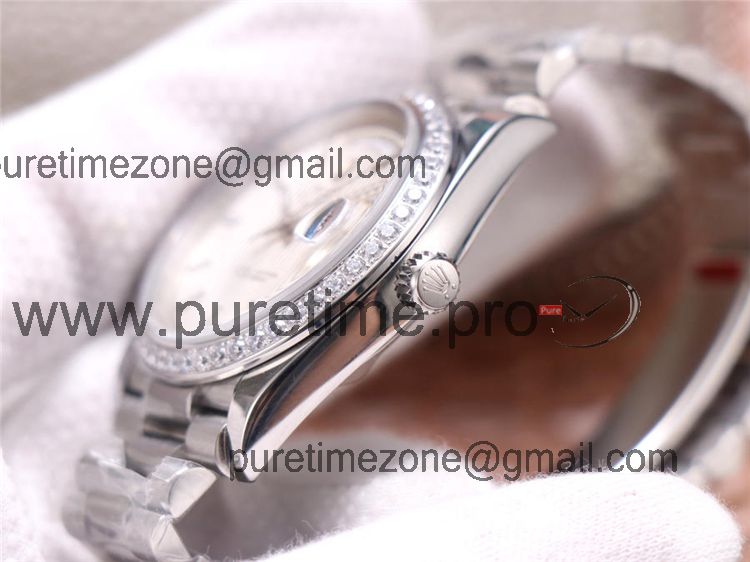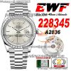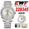 EWF DayDate 40 228345 A2836 Automatic Mens Watch Diamond Bezel Silver Dial President Bracelet Best Edition