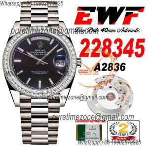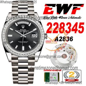 EWF DayDate 40 228345 A2836 Automatic Mens Watch Diamond Bezel Black Dial President Bracelet Best Edition $552.00 $460.00