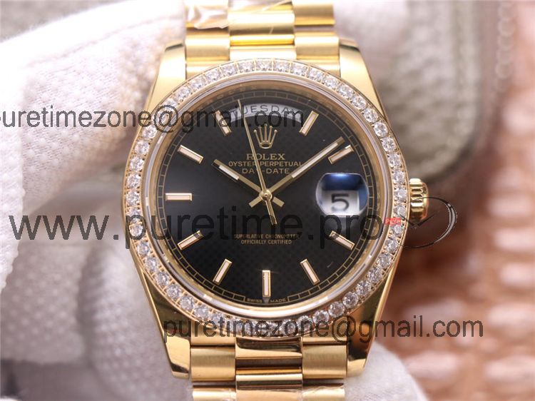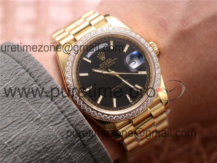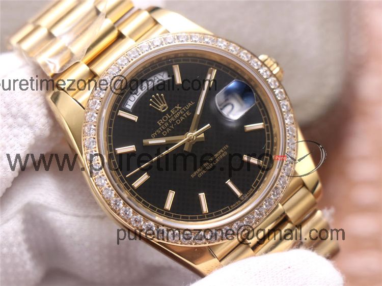 Home Rolex Day-Date EWF DayDate 40 228345 A2836 Automatic Mens Watch YG Diamond Bezel Black Texture Dial President Bracelet Best Edition