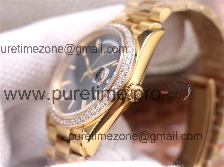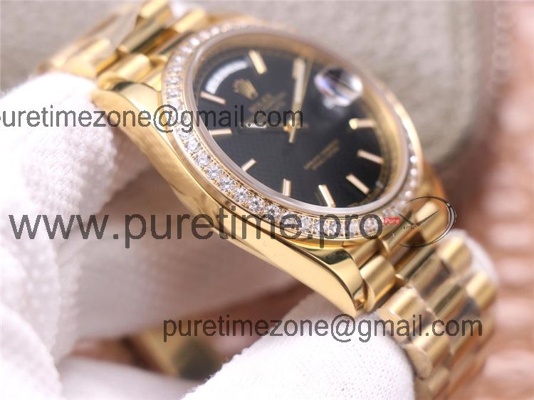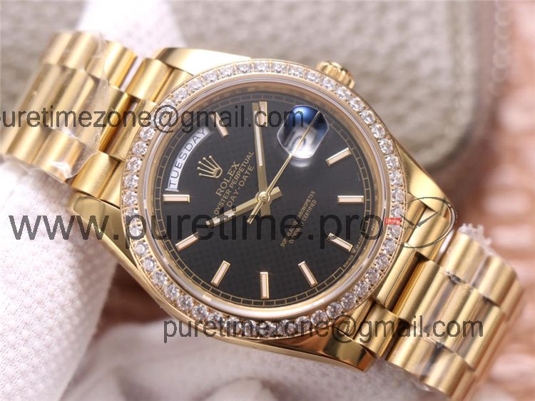 EWF DayDate 40 228345 A2836 Automatic Mens Watch YG Diamond Bezel Black Texture Dial President Bracelet Best Edition
