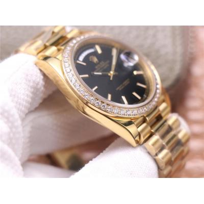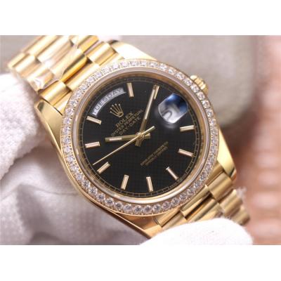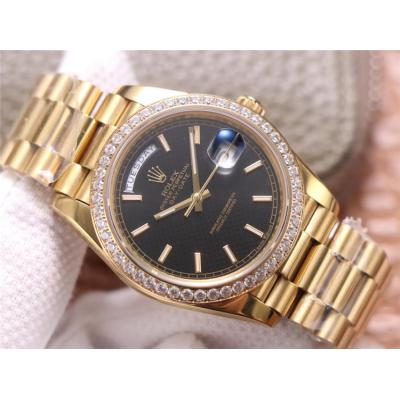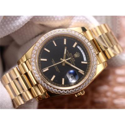 Home Rolex Day-Date EWF DayDate 40 228345 A2836 Automatic Mens Watch YG Diamond Bezel Black Texture Dial President Bracelet Best Edition