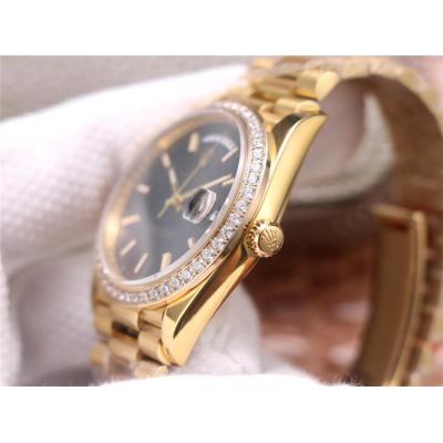 Day-Date 118138 36MM A2836 Automatic Mens Watch Best Edition TRF Yellow Gold Gold DialGreen Leather