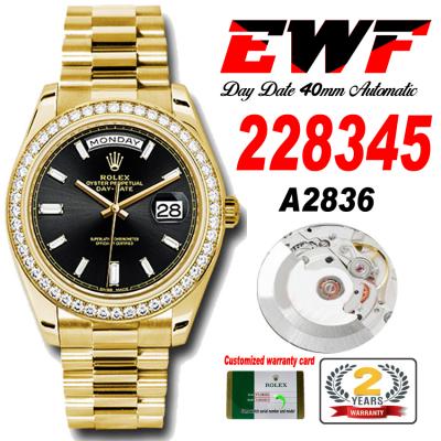 EWF DayDate 40 228345 A2836 Automatic Mens Watch YG Diamond Bezel Black Texture Dial President Bracelet Best Edition