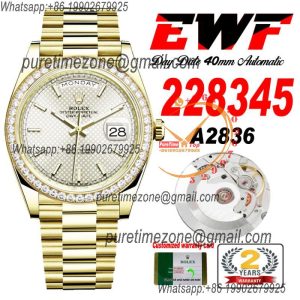EWF DayDate 40 228345 A2836 Automatic Mens Watch YG Diamond Bezel Silver Texture Dial President Bracelet Best Edition $576.00 $480.00