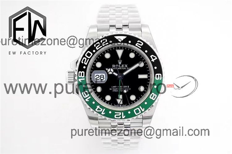 Home Rolex GMT-Master II EWF GMT-Master II 126720 Sprite A3186 Autoamtic Mens Watch Black Dial 904L SS Jubilee Bracelet Best Edition