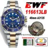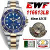 EWF Submariner 40 116613LB A3135 Automatic Mens Watch TT YG Ceramic Blue Dial 904L OysterSteel Bracelet Best Edition