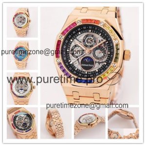 Replica Royal Oak A21j Automatic Movement Mens Watch Skeleton Dial Diamonds Case Rose Gold A38 $240.00 $200.00