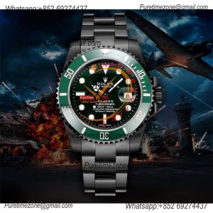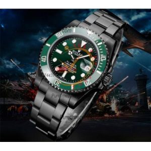 Submariner BLAKEN A3135 Automatic Mens Watch Best Edition BLAKENF 40 PVD Steel All Black Green Dial Oyster Steel Bracele