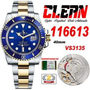 Submariner 116613 VR31355 Automatic Mens Watch Best Editio Clean Two Tone YG Ceramic Bezel Blue Dial 904L SS Bracelet