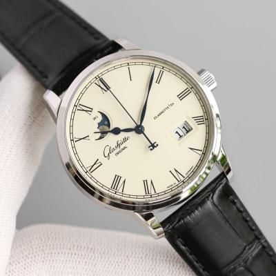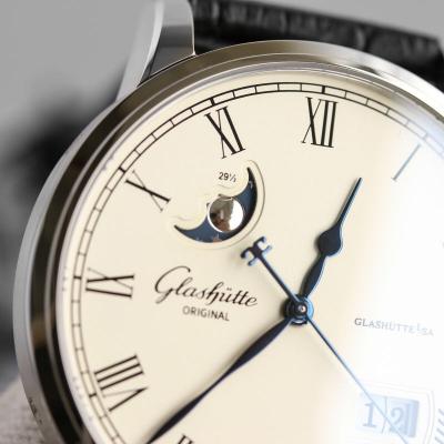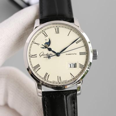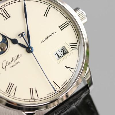 Home Glashutte Original Excellence Panorama Date Moon Phase A100-0Automatic Mens Watch 100-04-32-12-04 V9F White Dial Black Leather Best Edition