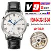 Excellence Panorama Date Moon Phase A100-0Automatic Mens Watch 100-04-32-12-04 V9F White Dial Black Leather Best Edition