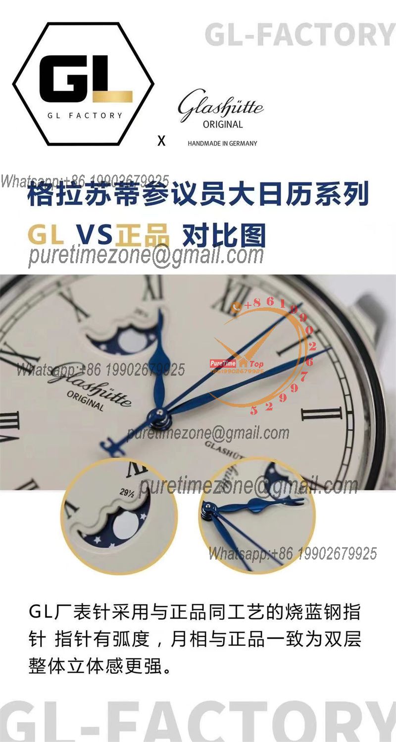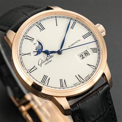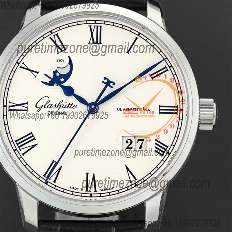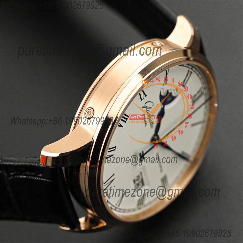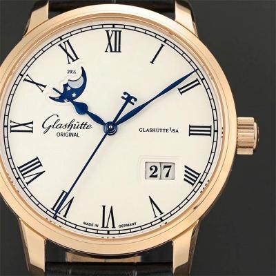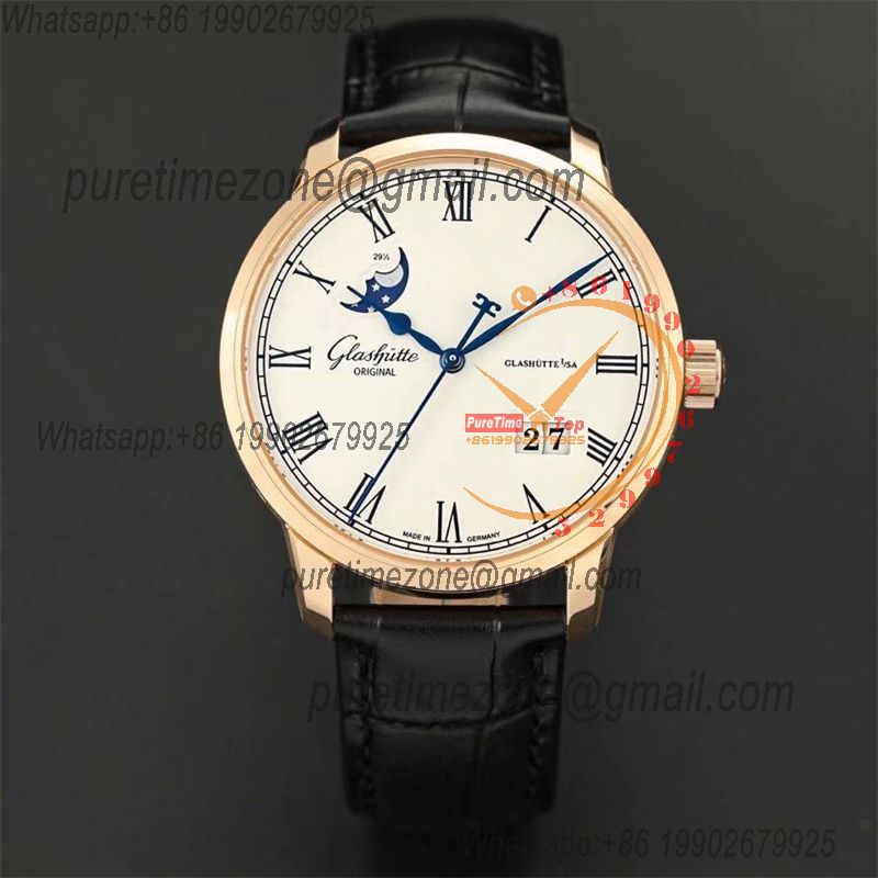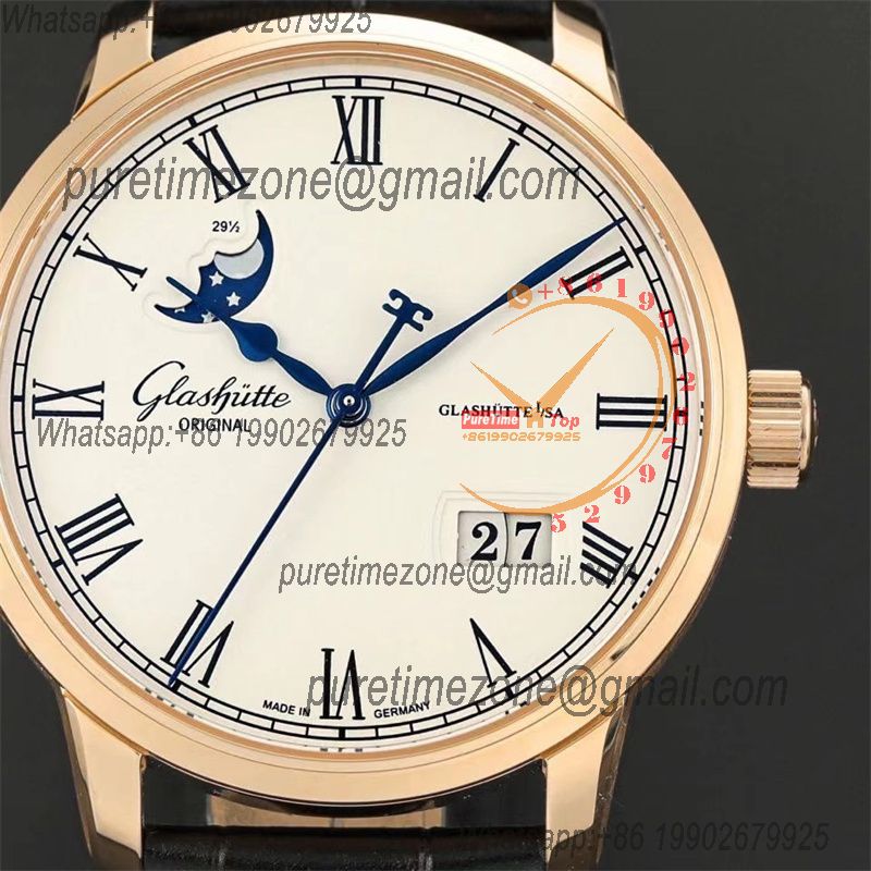 Home Glashutte Original Excellence Panorama Date Moon Phase Automatic Mens Watch 100-04-32-15-04 GLF RG White Dial Brown Leather Best Edition