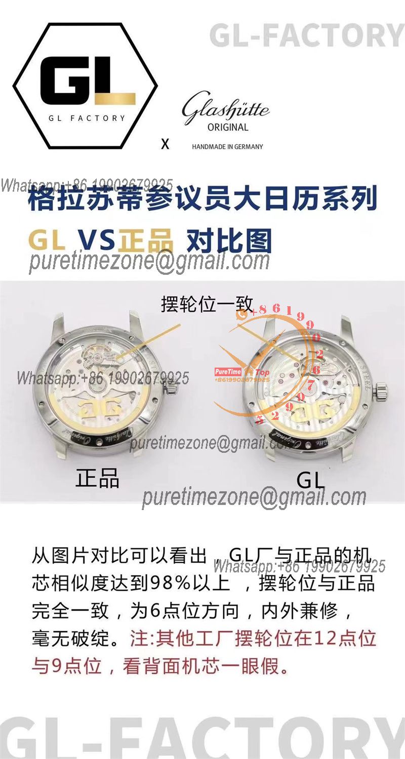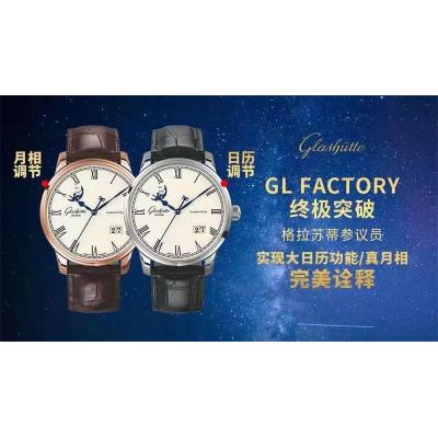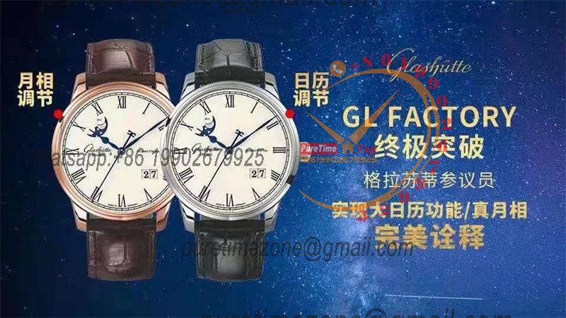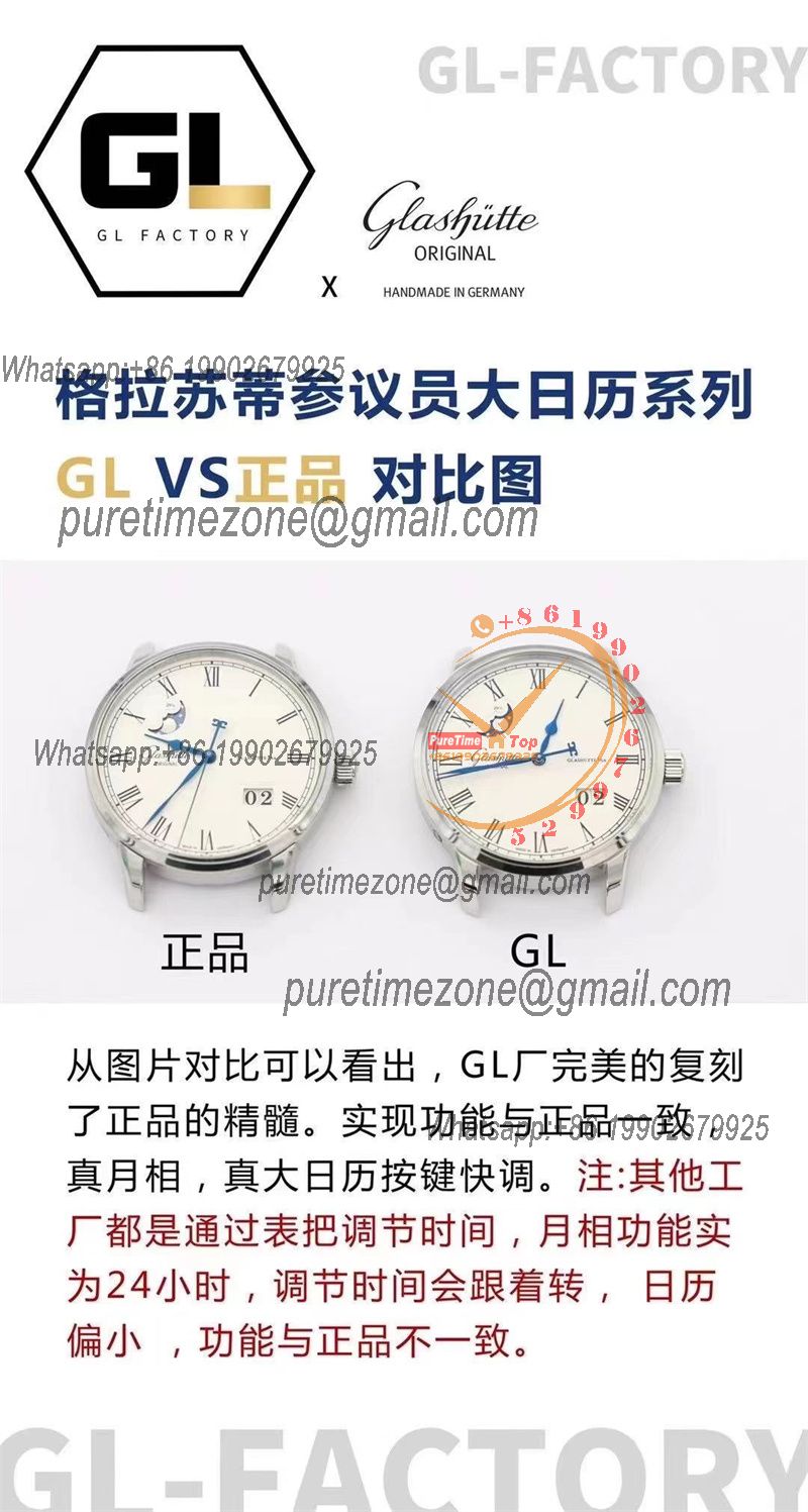 Home Glashutte Original Excellence Panorama Date Moon Phase Automatic Mens Watch 100-04-32-15-04 GLF RG White Dial Brown Leather Best Edition