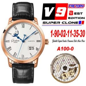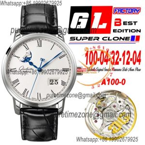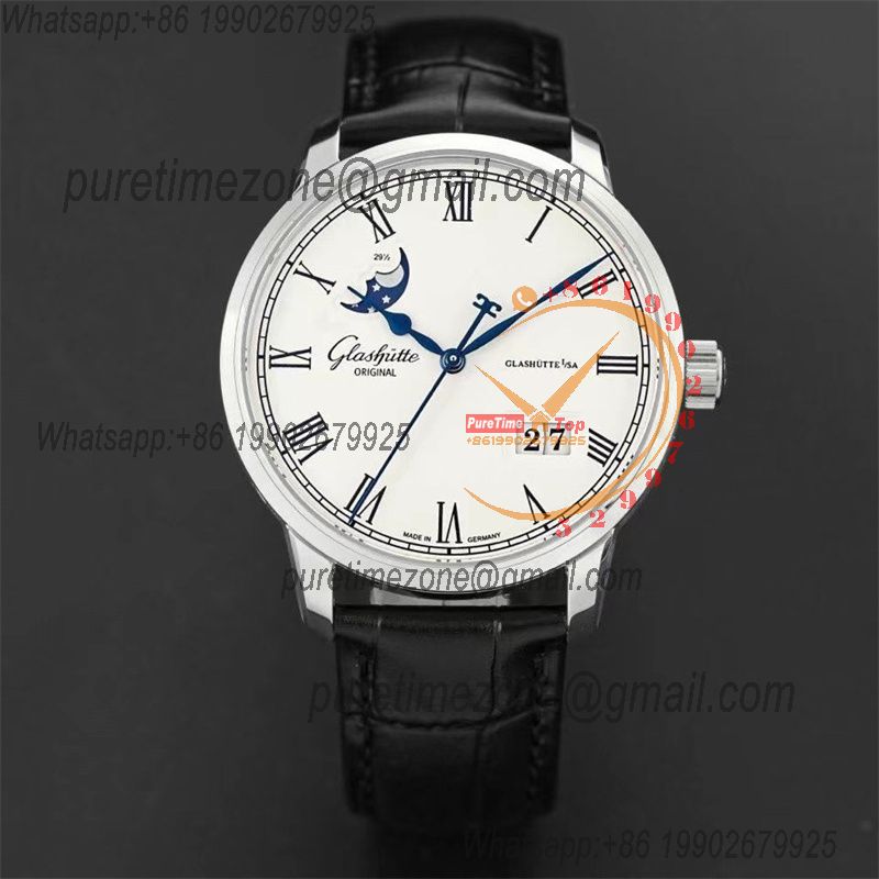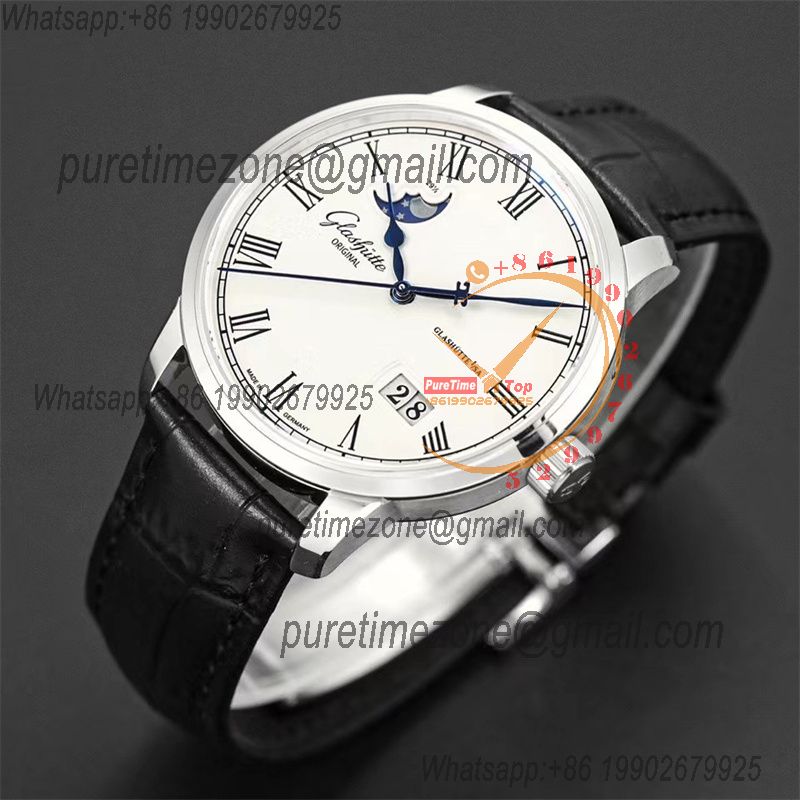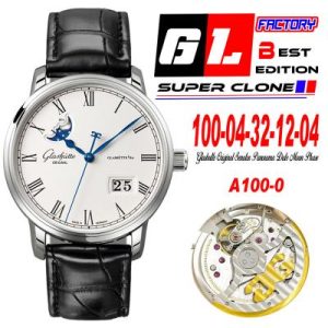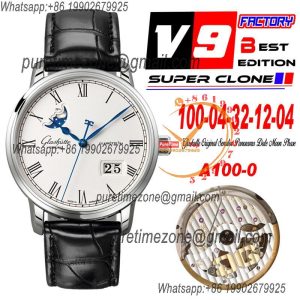 Excellence Panorama Date Moon Phase A100-0Automatic Mens Watch 100-04-32-12-04 GLF White Dial Black Leather Best Edition
