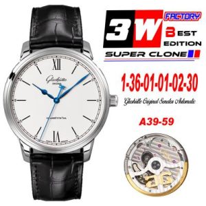 Senator Excellence A36-01 Automatic Mens Watch 3WF 1-39-59-01-02-04 White Dial Roman Black Leather Best Edition