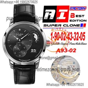 PanoMaticLunar MoonPhase A93-02 Automatic Mens Watch 1-90-02-43-32-05 AIF Steel Black Dial Leather Best Edition