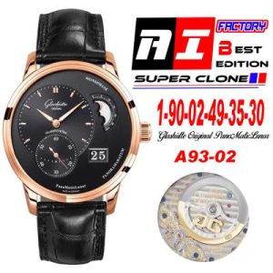 PanoMaticLunar MoonPhase A93-02 Automatic Mens Watch 1-90-02-49-35-30 AIF Rose Gold Black Dial Leather Best Edition