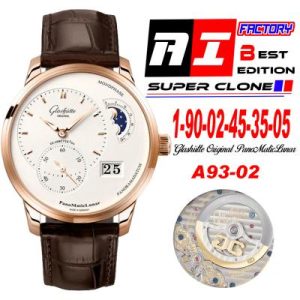 PanoMaticLunar MoonPhase A93-02 Automatic Mens Watch 1-90-02-45-35-05 AIF RG White Dial Brown Leather Best Edition