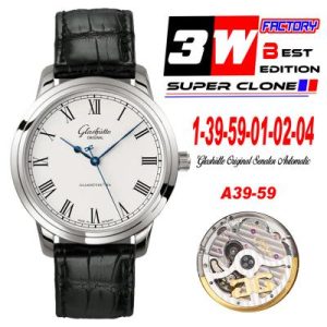 Senator Excellence A36-01 Automatic Mens Watch 3WF 1-39-59-01-02-04 White Dial Roman Black Leather Best Edition