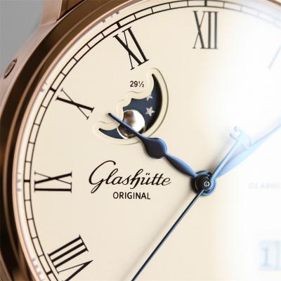 Home Glashutte Original Excellence Panorama Date Moon Phase Automatic Mens Watch 100-04-32-15-04 V9F RG White Dial Brown Leather Best Edition