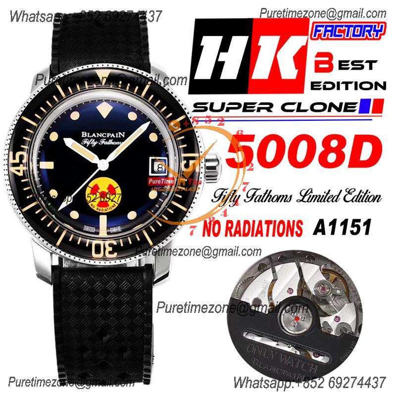Fifty Fathoms 5008D No Rad A1151 Automatic Mens Watch Best Edition HKF 40mm Black Dial Rubber Strap CHS