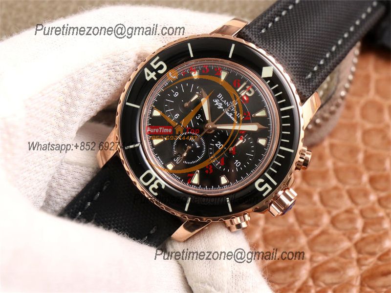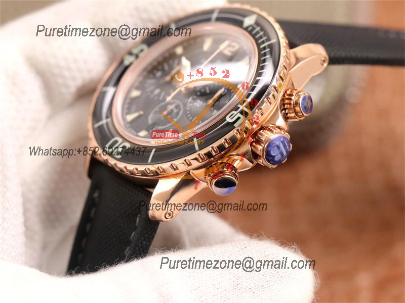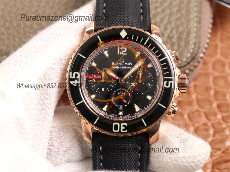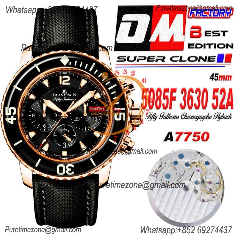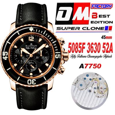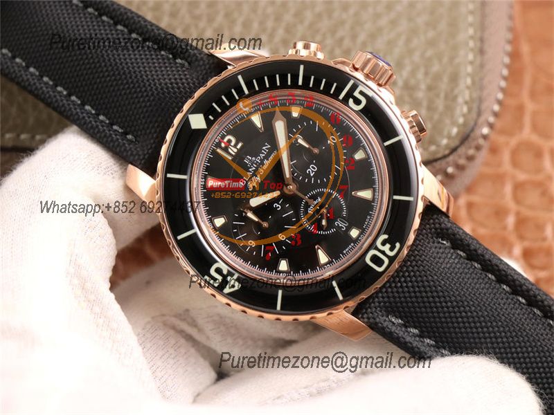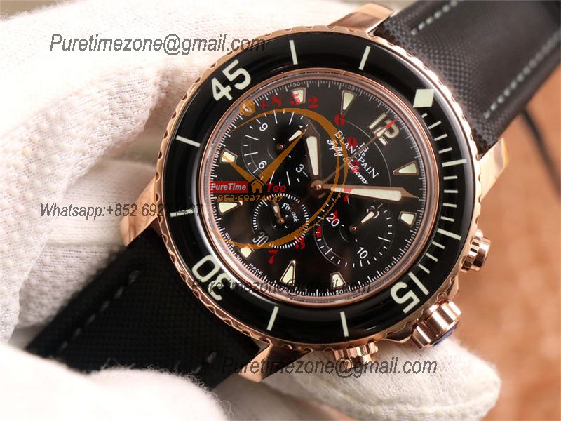 Fifty Fathoms 5058F A7750 Automatic Chronograph Mens Watch Best Edition OMF 45 RG Black Dial Nylon Strap CHS