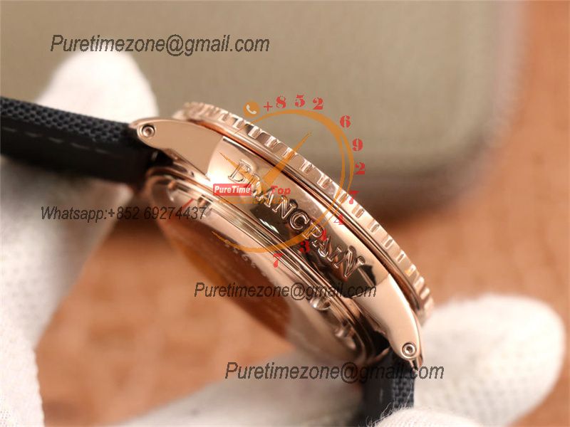 Fifty Fathoms 5015-1130-52A M9015 Automatic Mens Watch Best Edition TWF 45mm RG Black Dial Sail-Canvas Strap CHS
