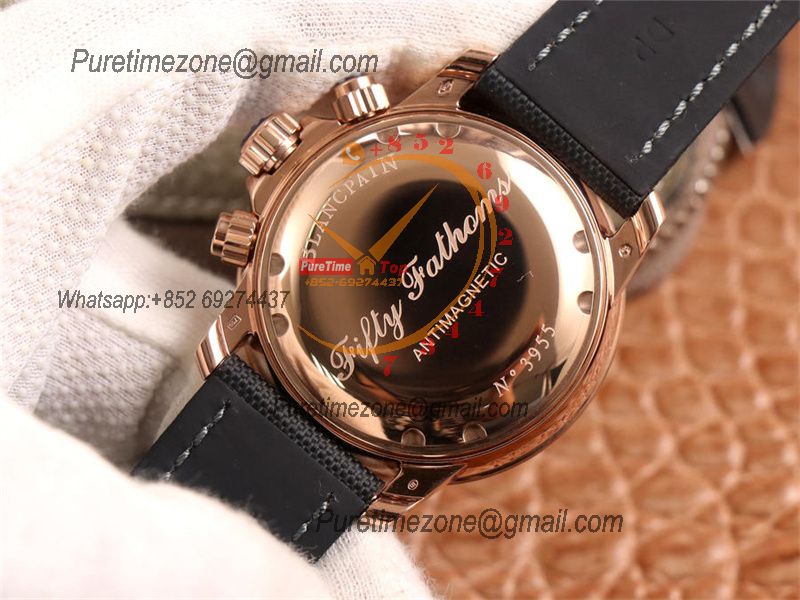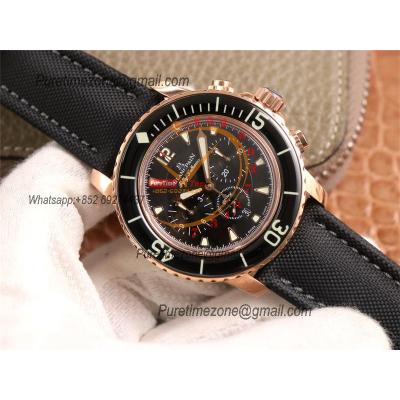 Home Blancpain Fifty Fathoms 5058F A7750 Automatic Chronograph Mens Watch Best Edition OMF 45 RG Black Dial Nylon Strap CHS