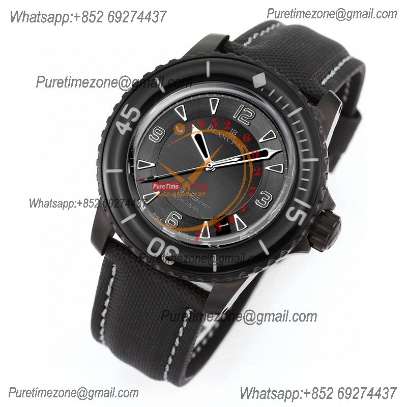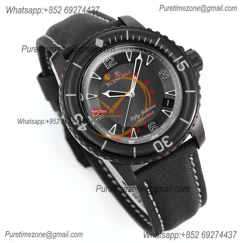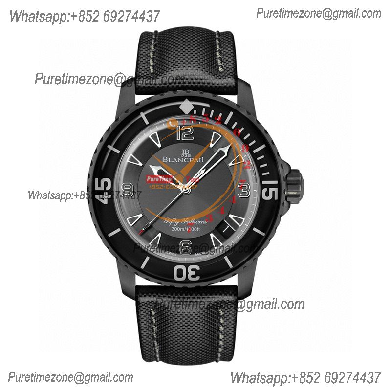 Fifty Fathoms Automatique 5015 M9015 Automatic Mens Watch Best Edition TWF 45mm DLC All Black Dial Leather CHS