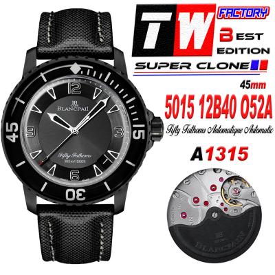 Fifty Fathoms Automatique 5015 M9015 Automatic Mens Watch Best Edition TWF 45mm DLC All Black Dial Leather CHS