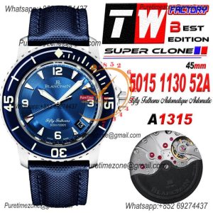 Fifty Fathoms Automatique 5015 M9015 Automatic Mens Watch Best Edition TWF 45mm Titanium Blue Dial Leather CHS $600.00 $500.00