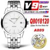 Geophysic True Second Q8018120 A899 Automatic Mens Watch Best Edition V9F 39mm White Dial SS Bracelet CHS