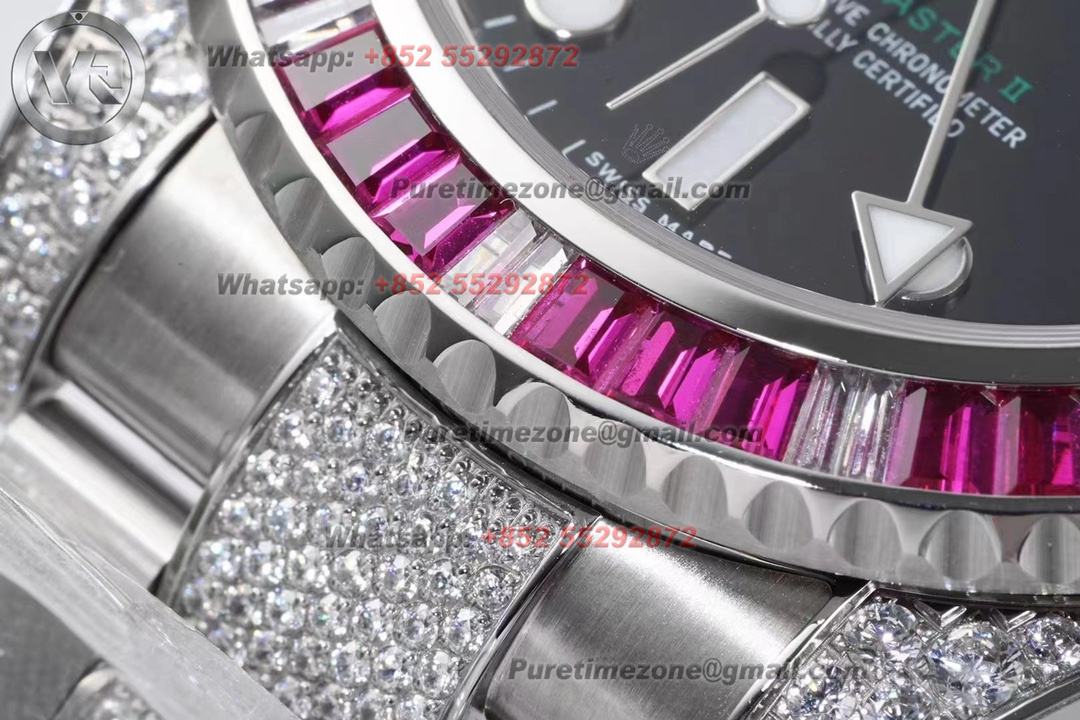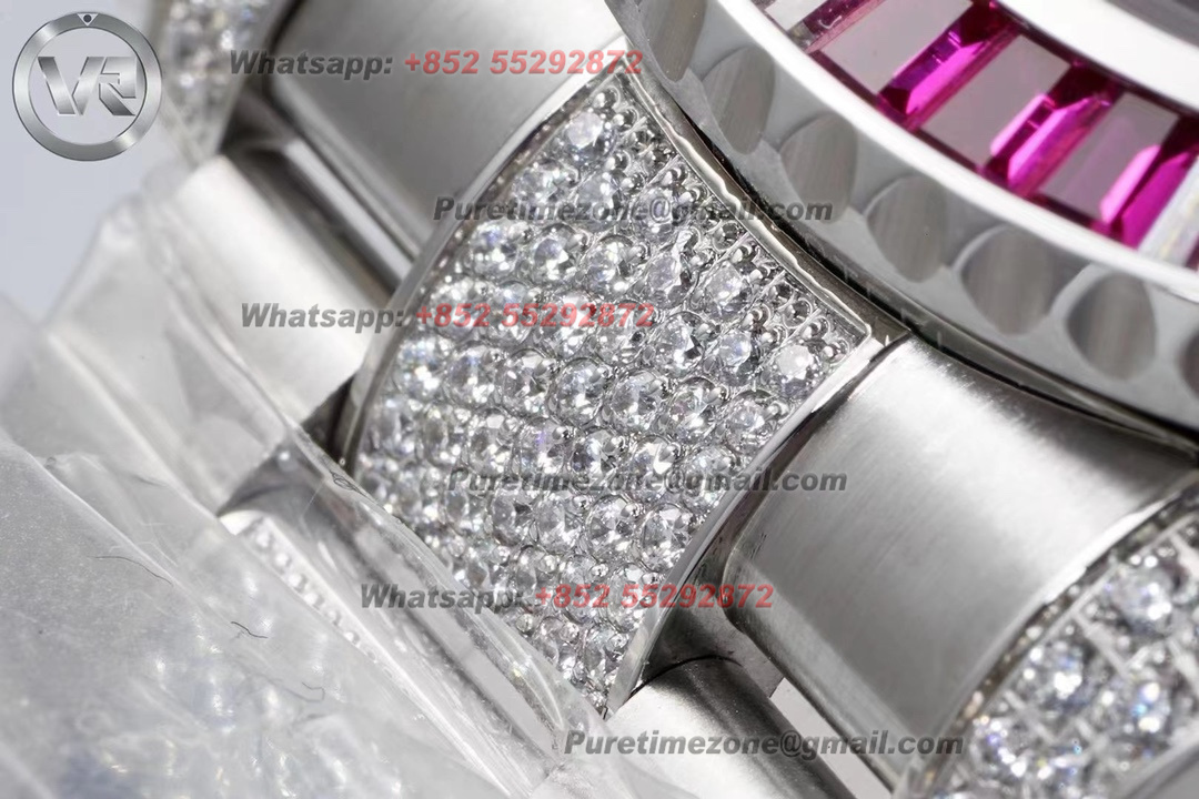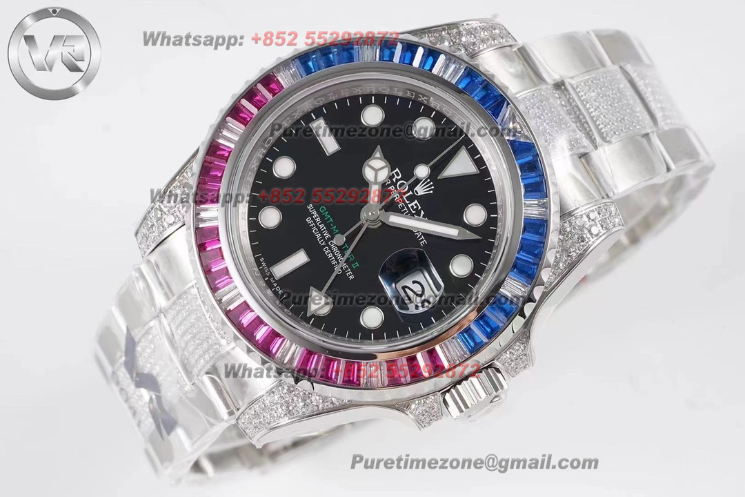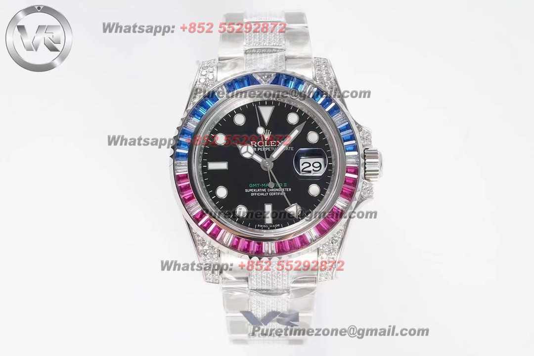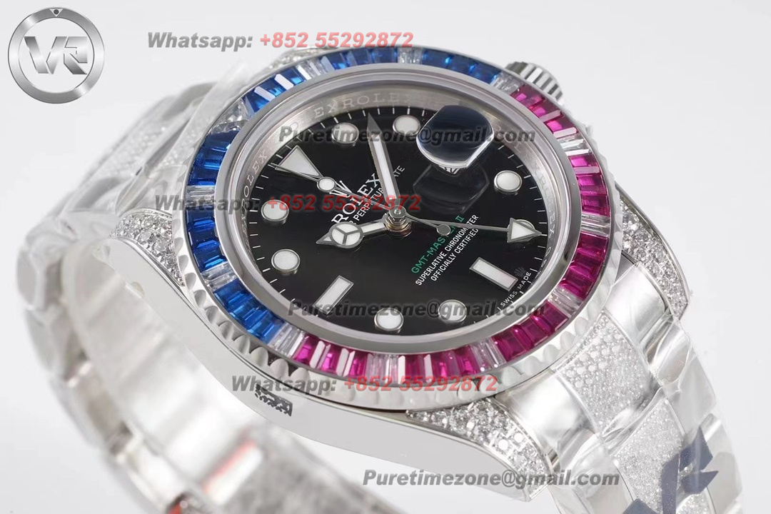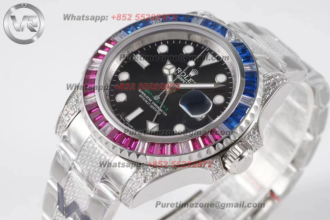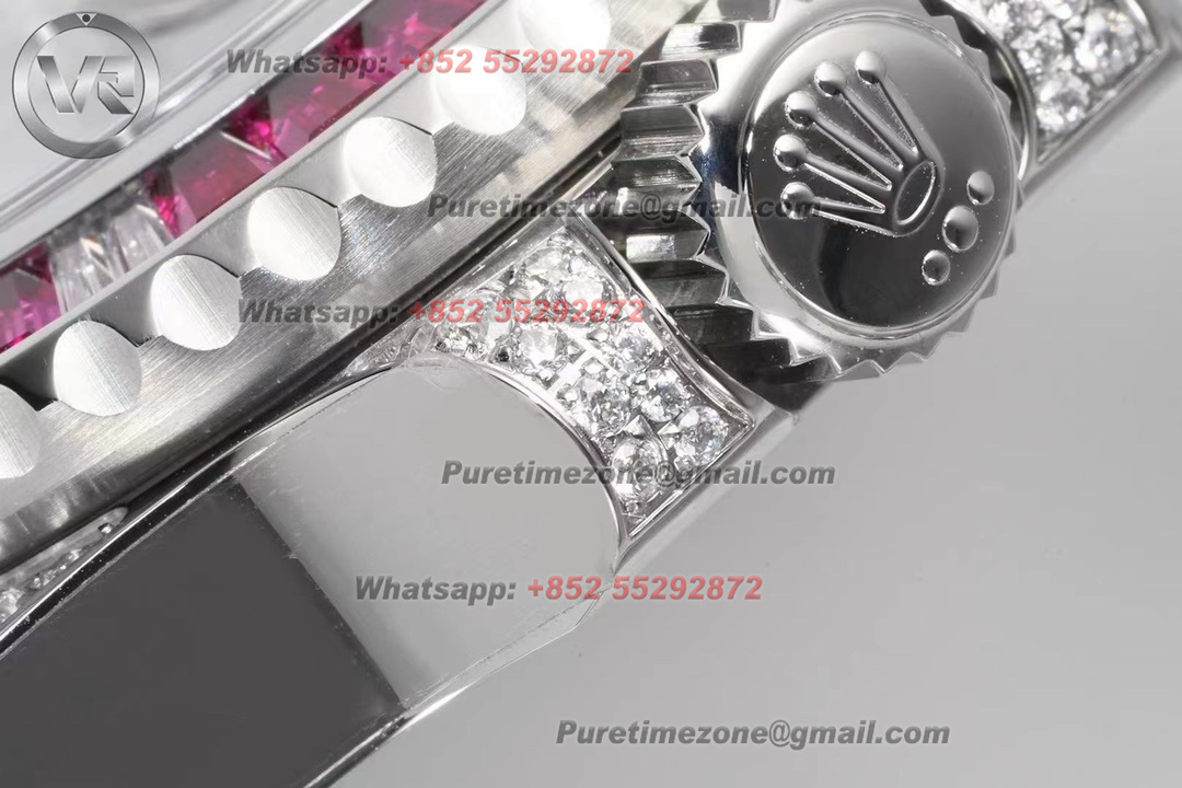 Bezel:Bi-directional rotating red/blue/black diamonds bezel