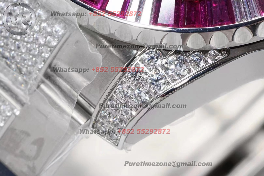 Movement:Asian Super Clone 3285 Automatic Movement at 28800 vph, Correct Handstack, self-winding, independent adjustable hour hand to set the date, same adjusting as genuine