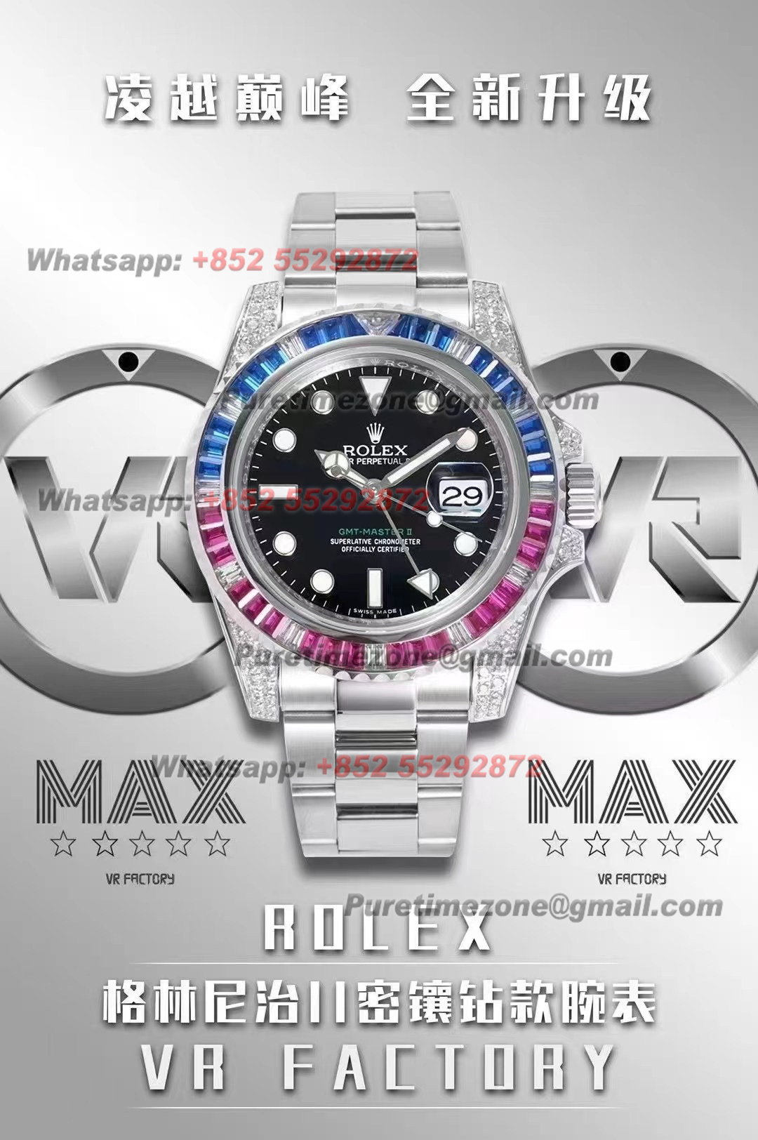 Home Rolex GMT-Master II GMT-Master II 116759 Automatic Mens Watch Best Edition VRF V3 40 Rainbow Diamond Black Dial 904L SS Bracelet VR3186 CHS