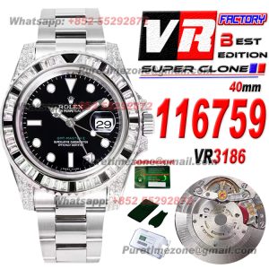 GMT-Master II 116759 Automatic Mens Watch Best Edition VRF V3 40 Rainbow Diamond Black Dial 904L SS Bracelet VR3186 CHS