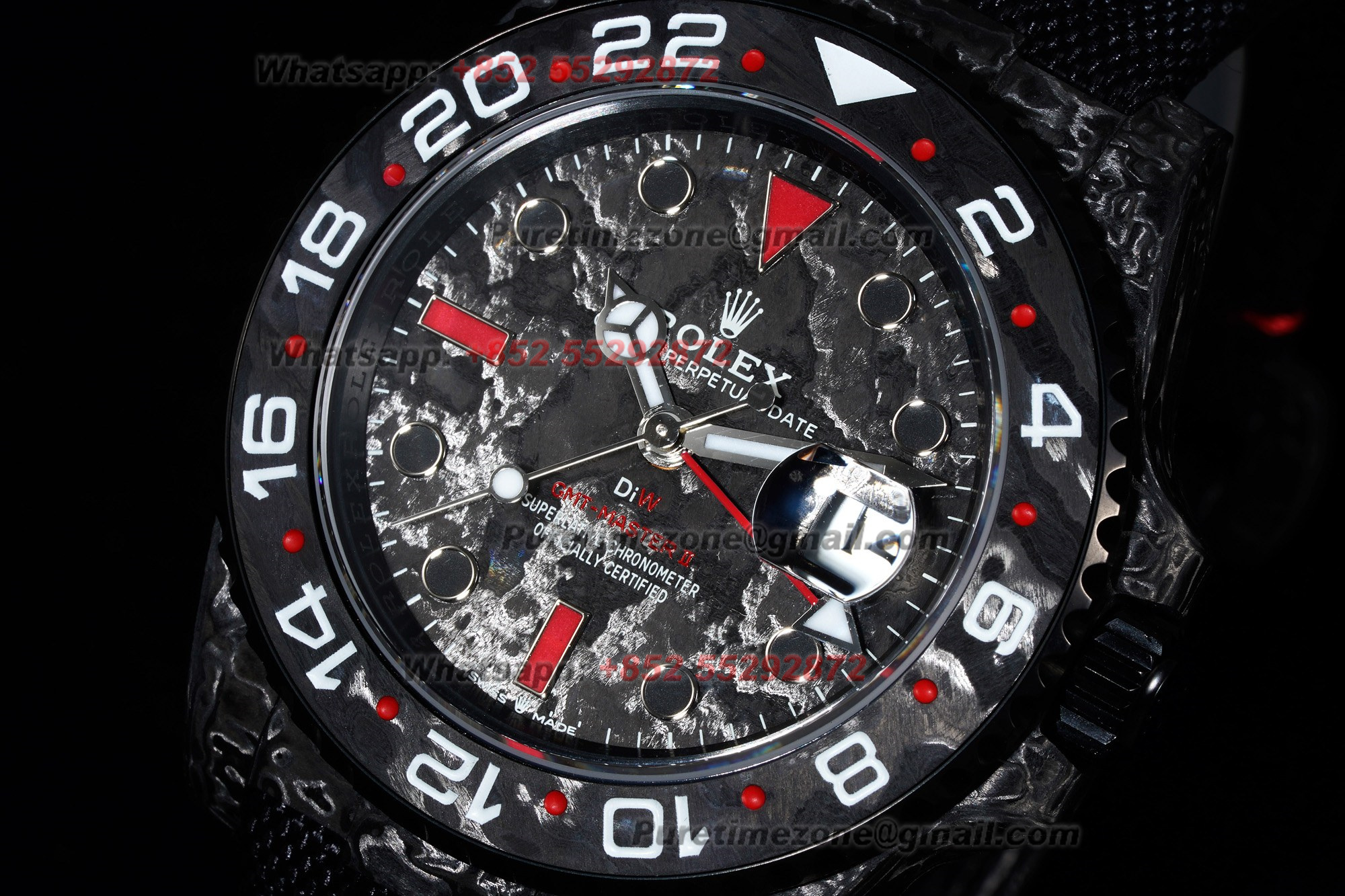 Home Rolex GMT-Master II GMT-Master II 126710 DIW Carbon Automatic Mens Watch Super Clone VSF 40 NTPT Black Red Dial Nylon Strap VR3186 CHS