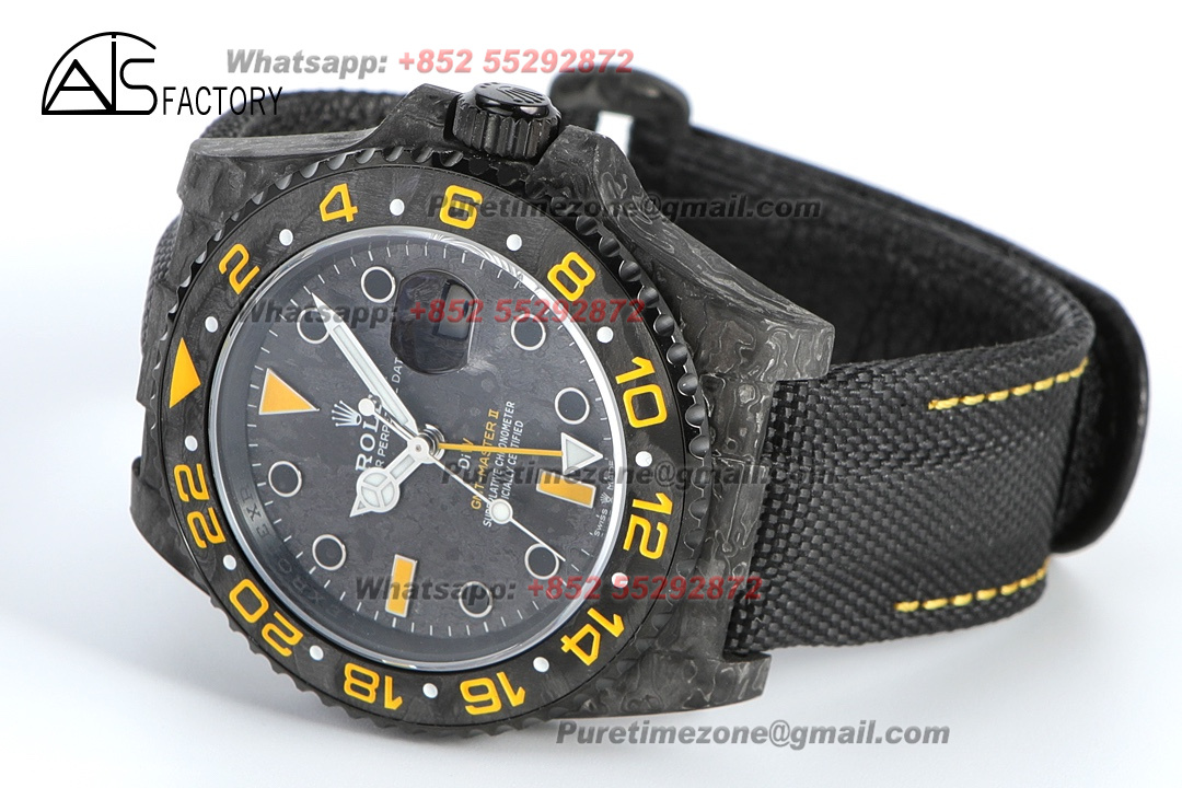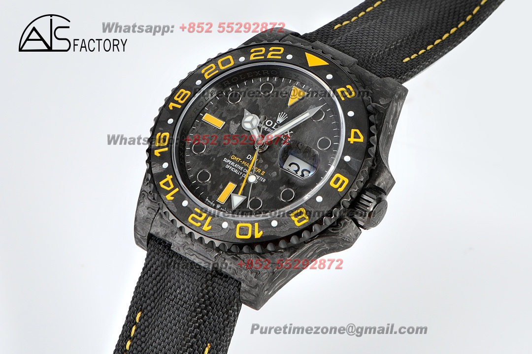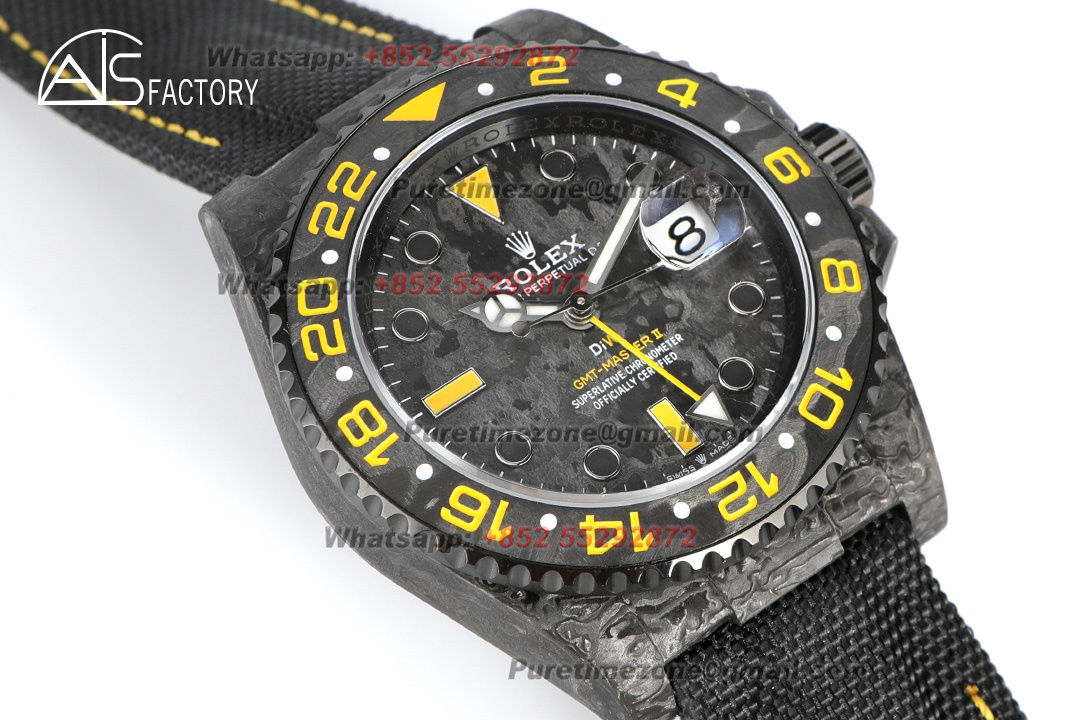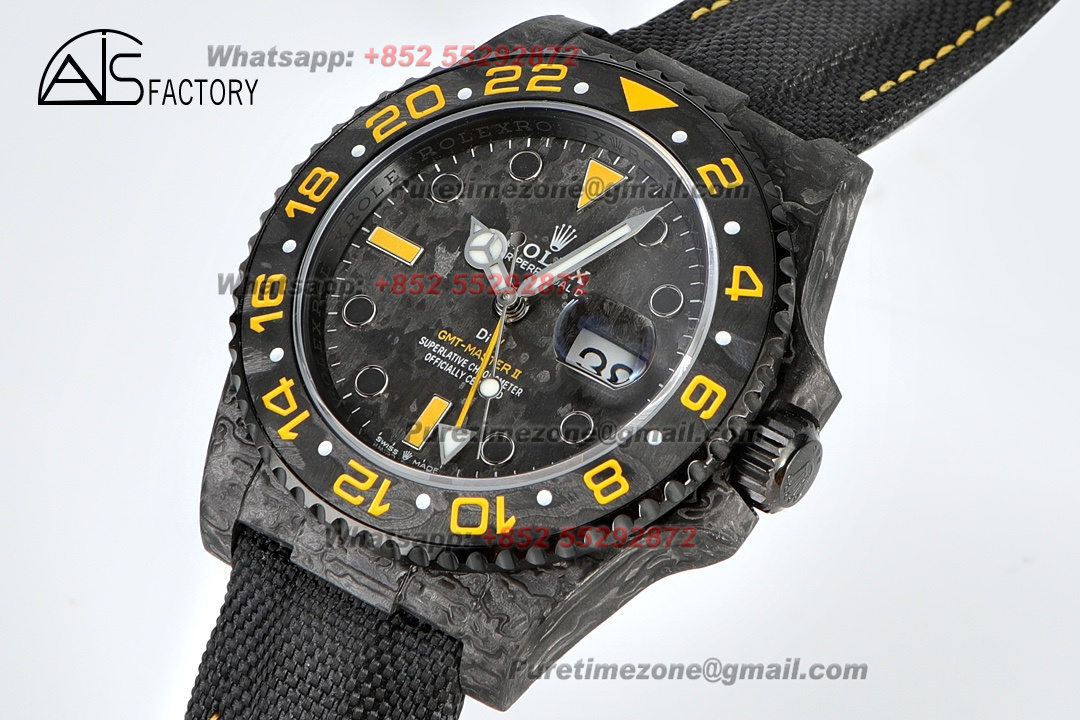 Home Rolex GMT-Master II GMT-Master II 126710 DIW Carbon Automatic Mens Watch Super Clone VSF 40 NTPT Black Yellow Dial Nylon Strap VR3186 CHS